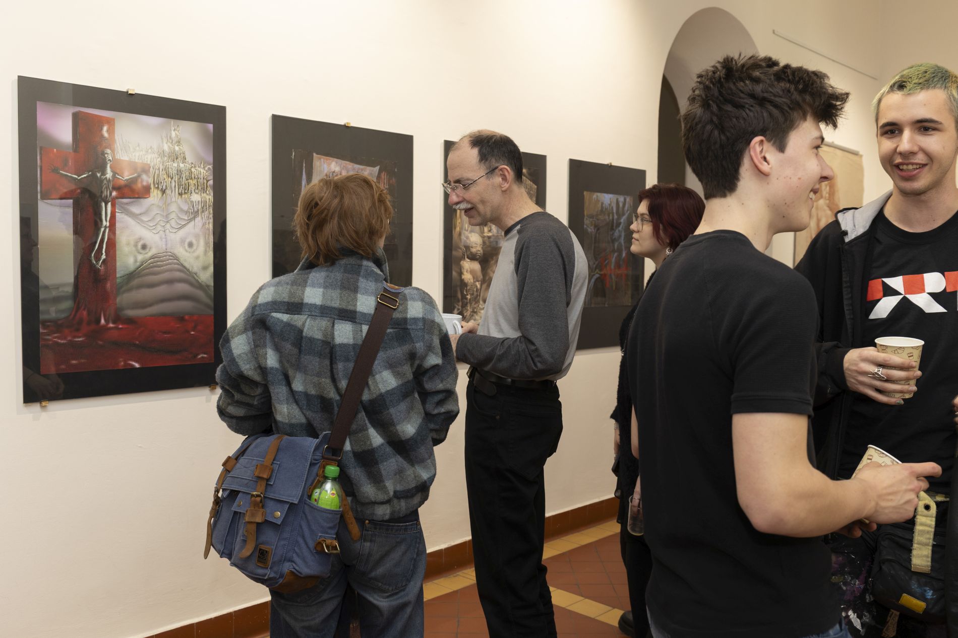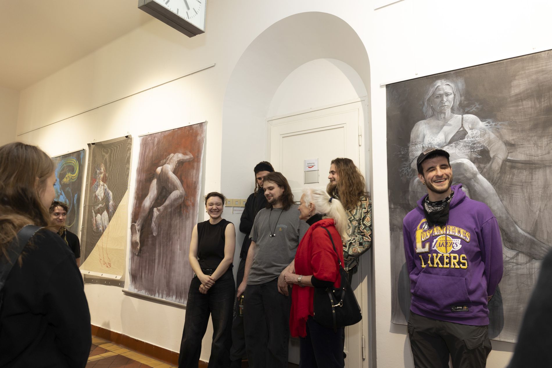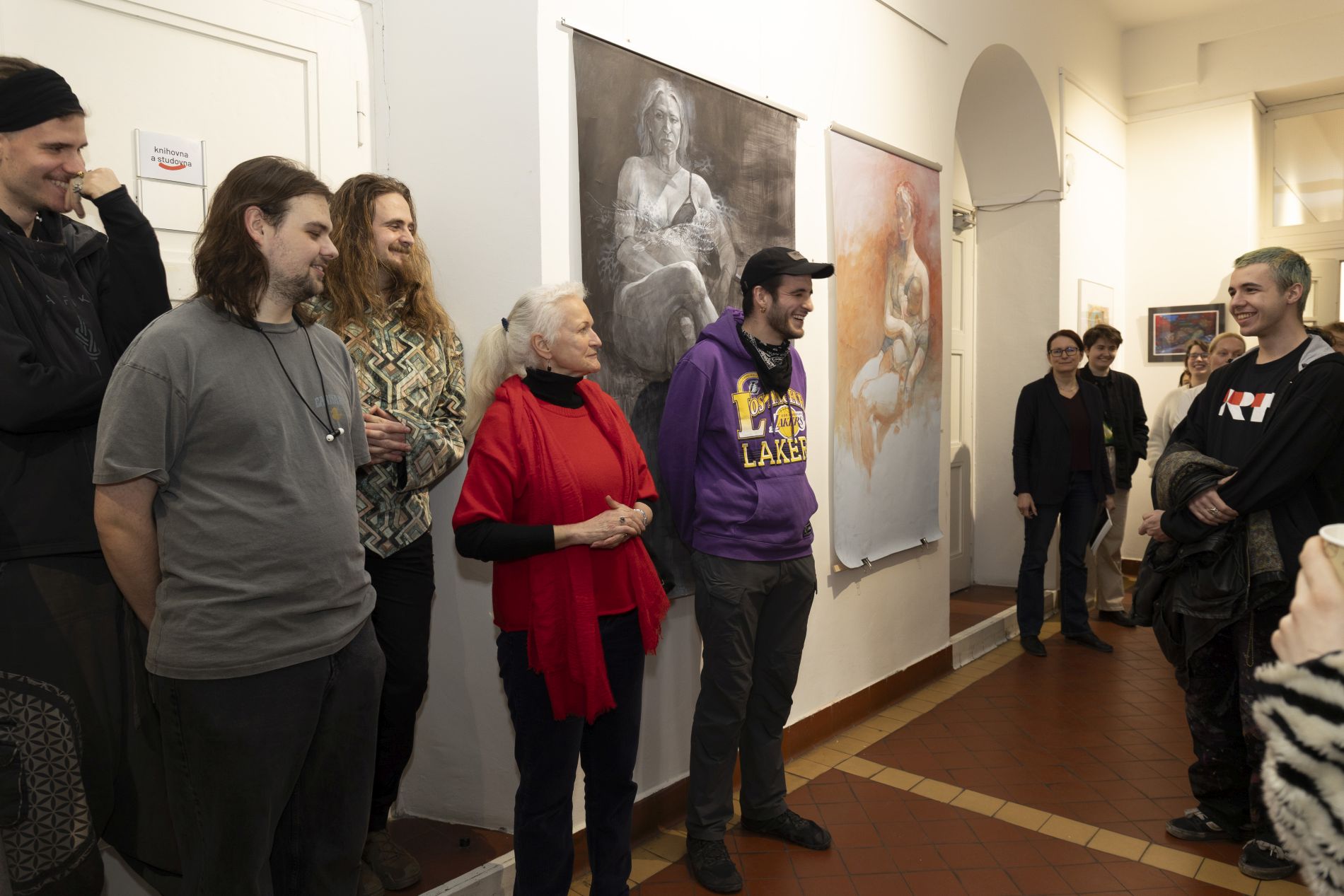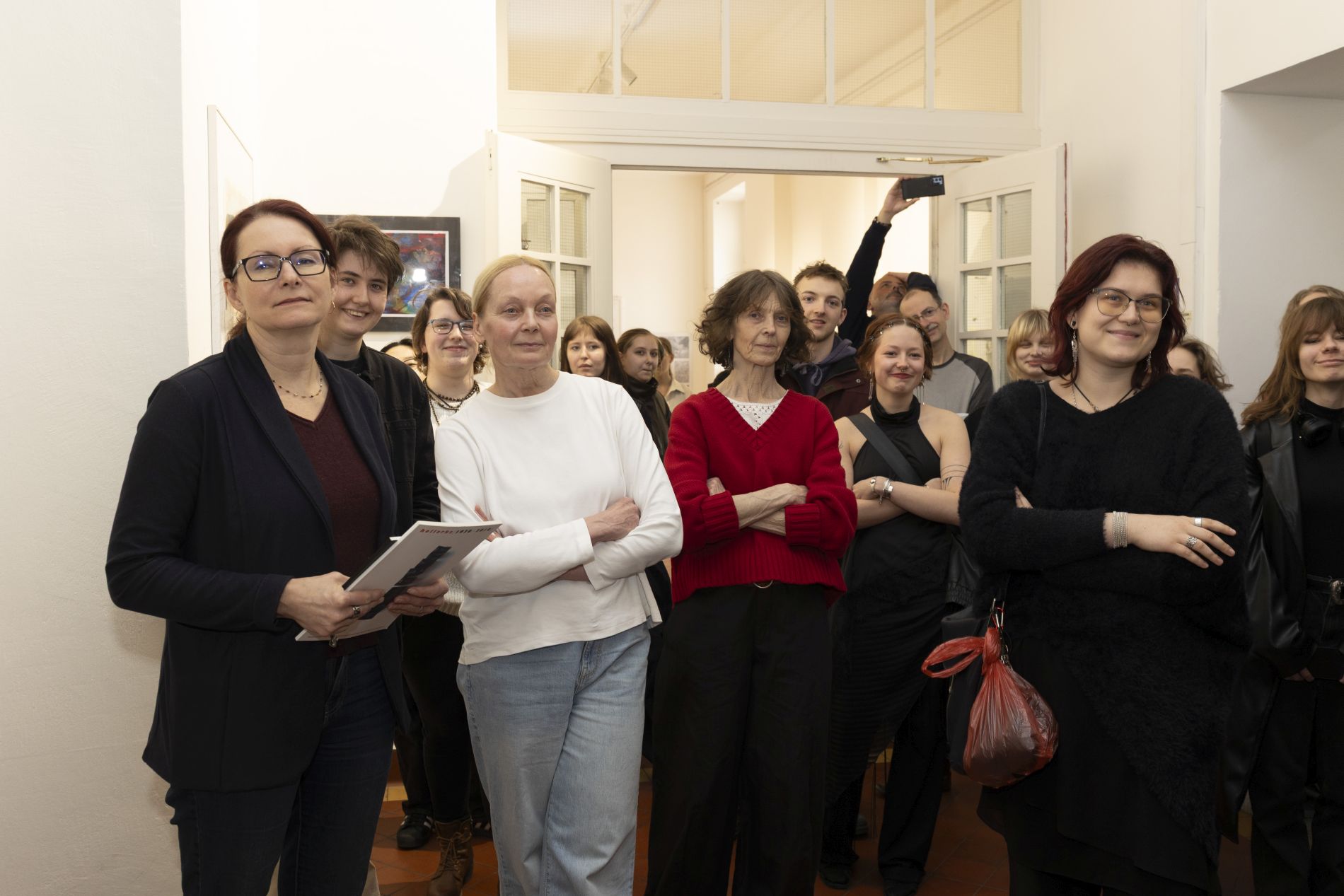Vernisáž 26. 3. 2026 zahájila v duchu opětovných shledání Lucie Holá, která zde několik desetiletí vyučovala Dějiny umění. Výstava bude k vidění v galerii v 2. patře školy do konce května.