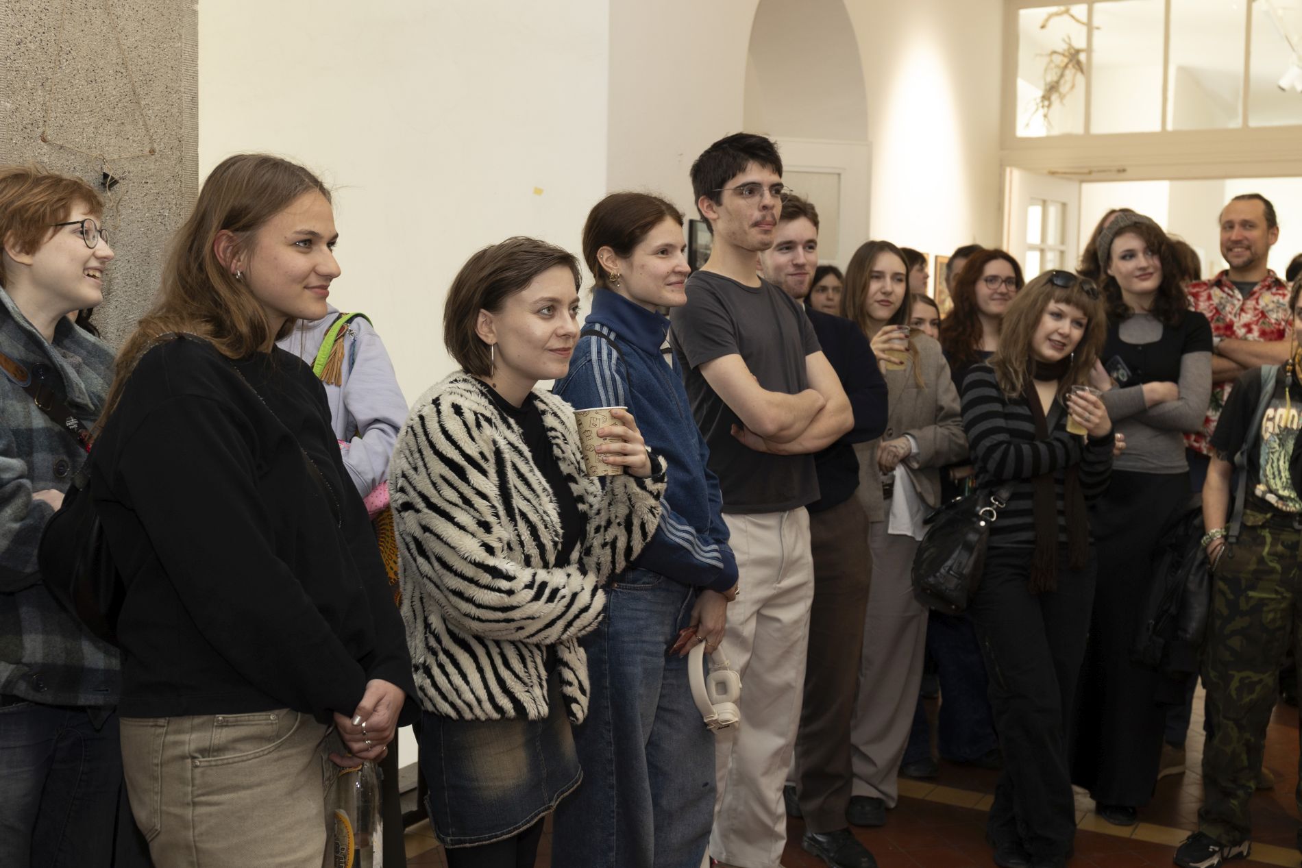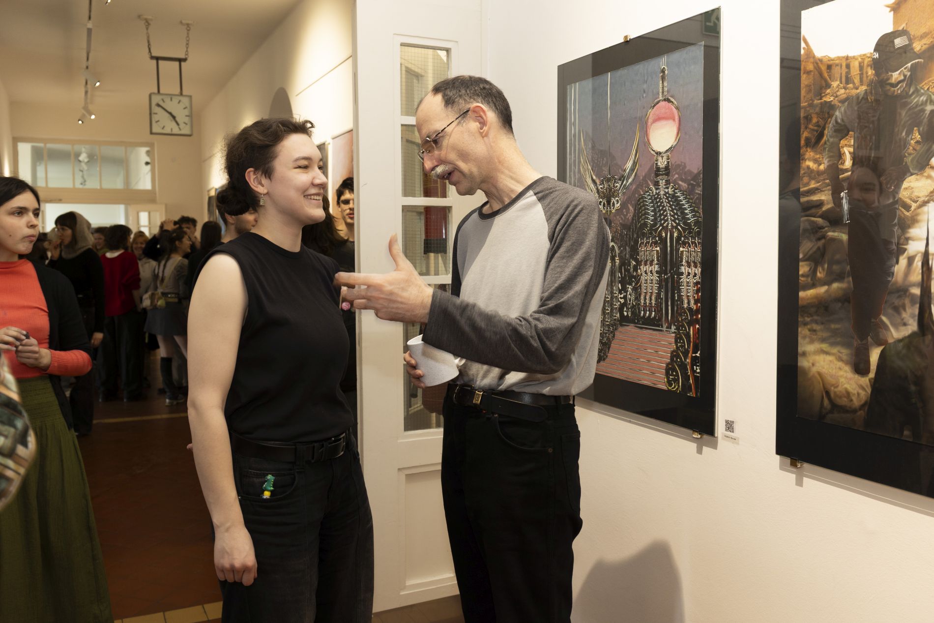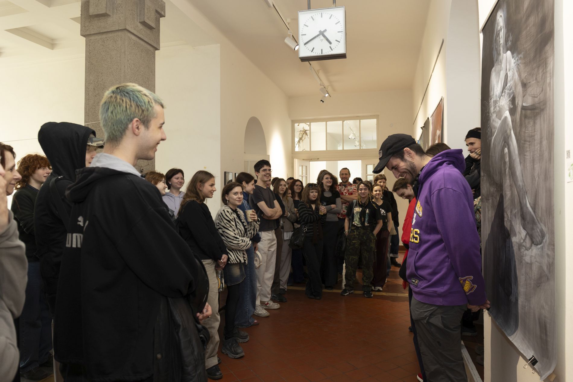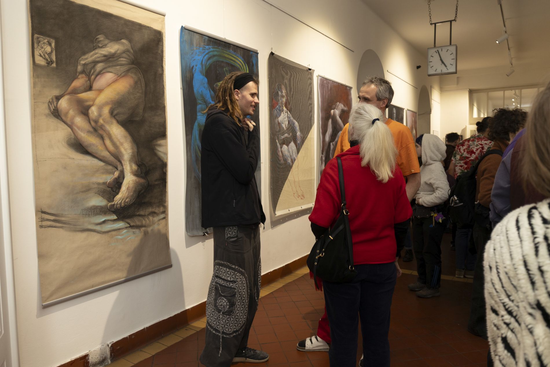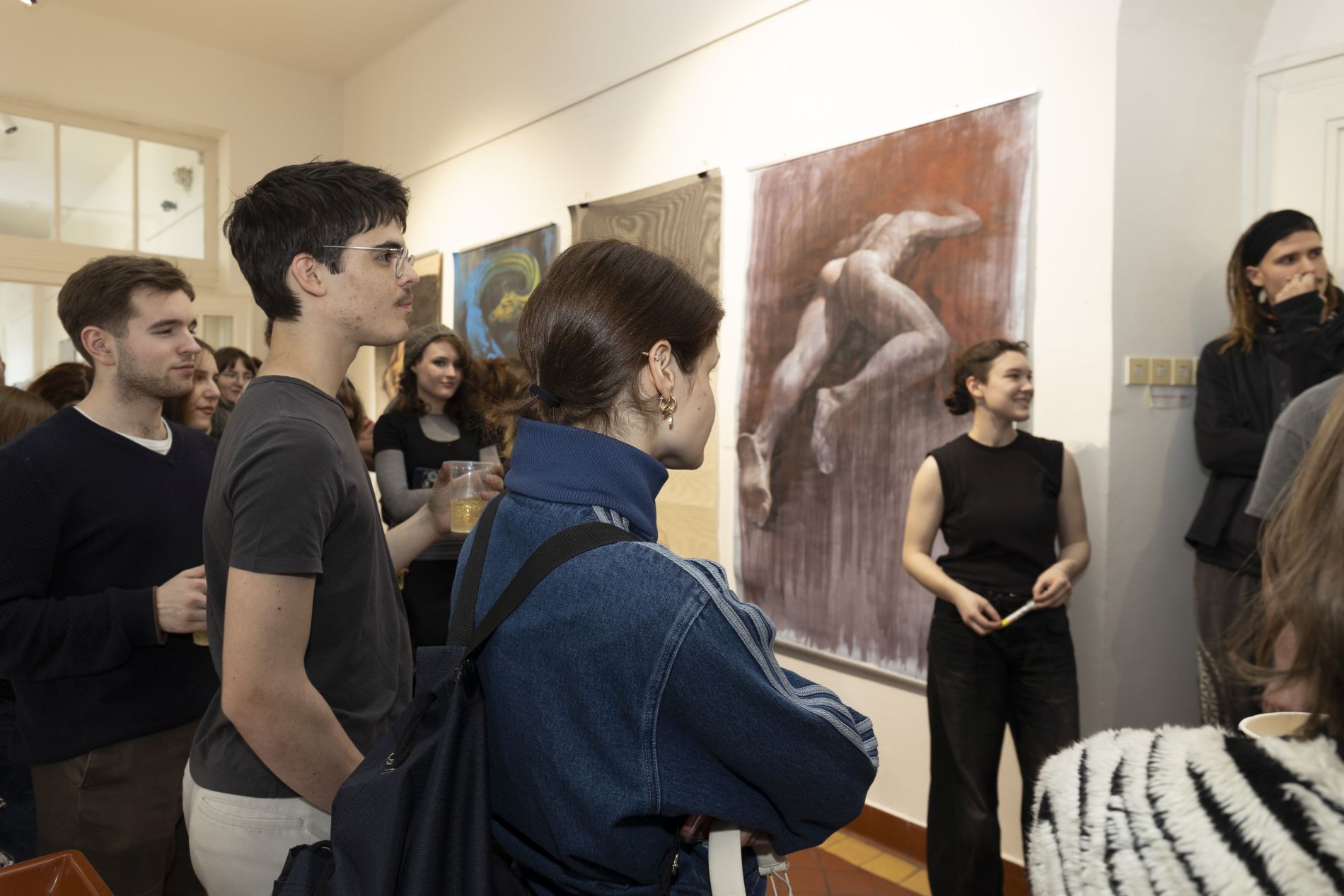Vernisáž 26. 3. 2026 zahájila v duchu opětovných shledání Lucie Holá, která zde několik desetiletí vyučovala Dějiny umění. Výstava bude k vidění v galerii v 2. patře školy do konce května.