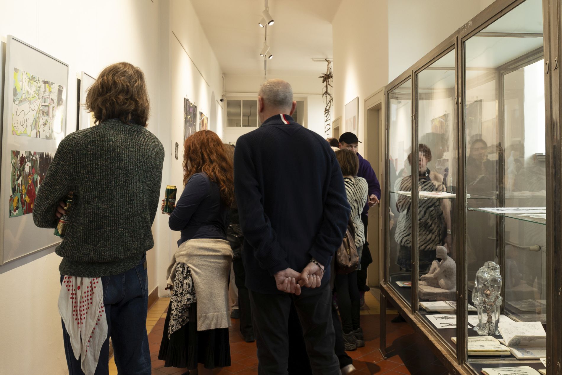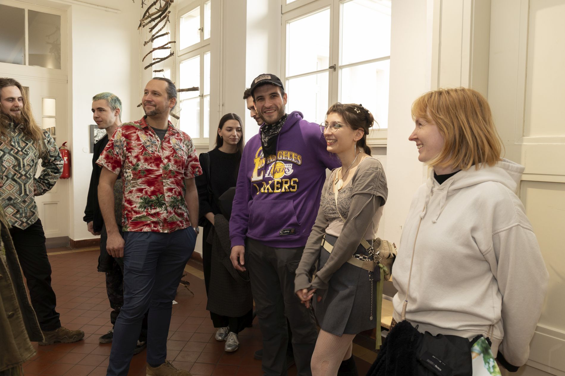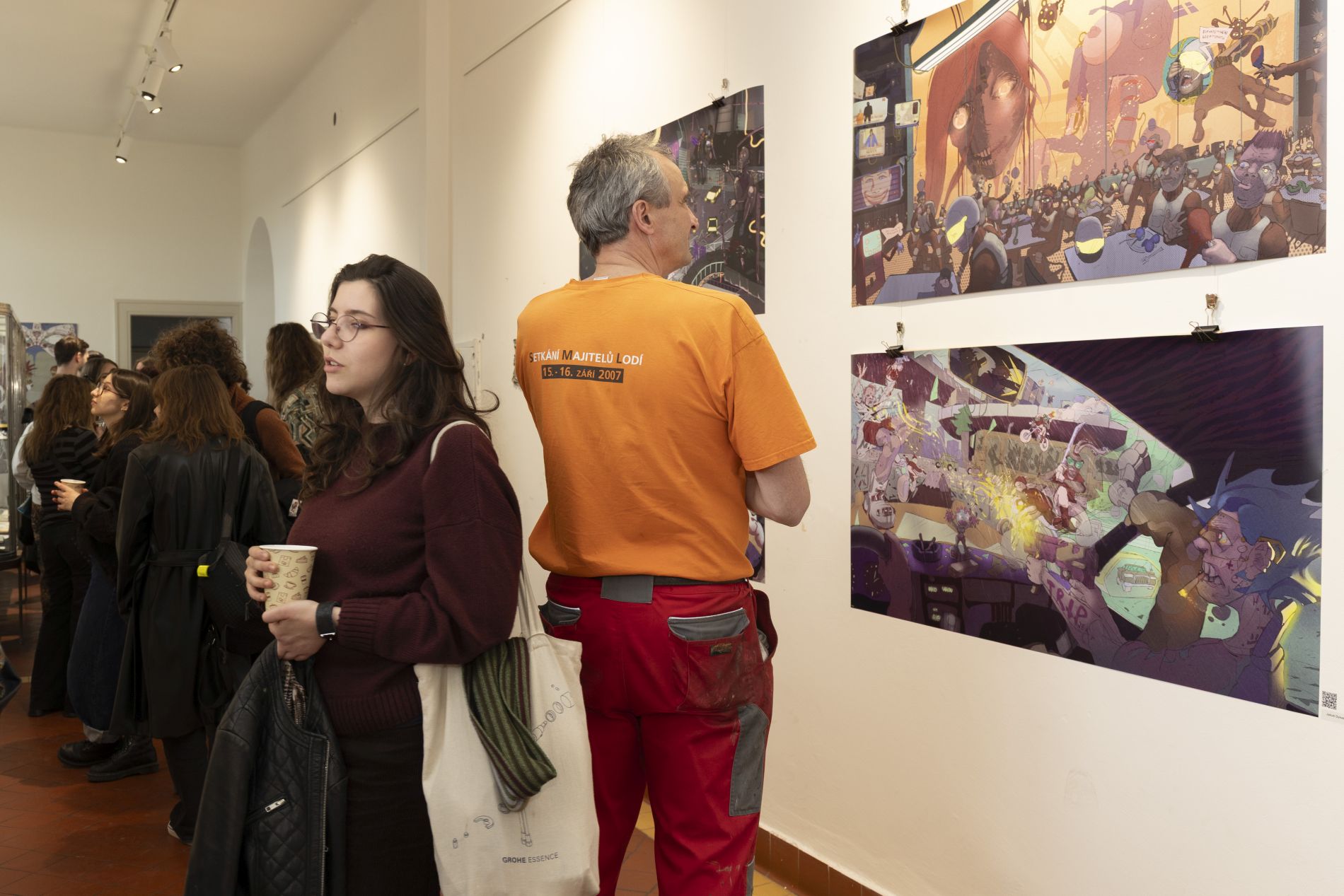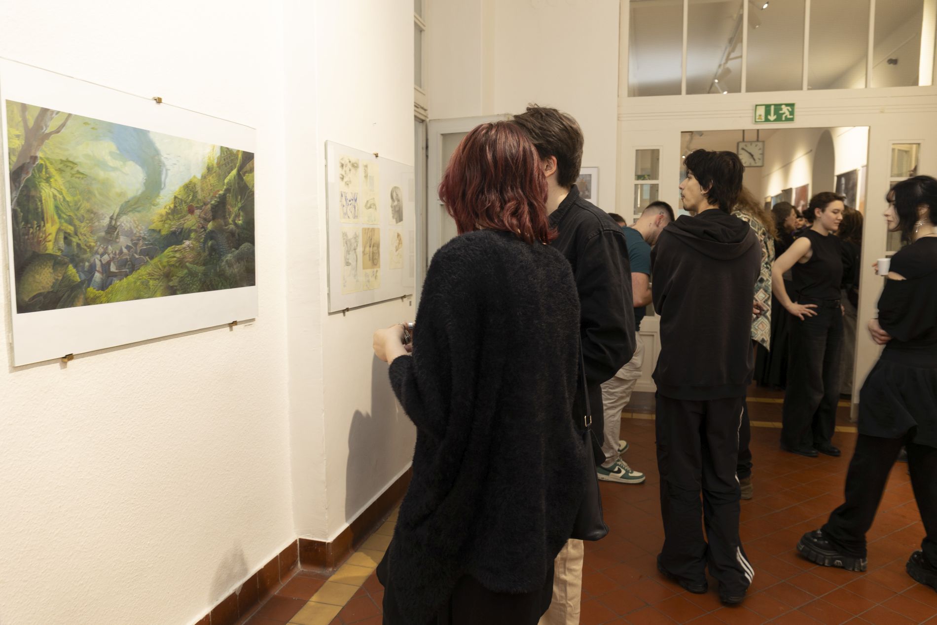 Vernisáž 26. 3. 2026 zahájila v duchu opětovných shledání Lucie Holá, která zde několik desetiletí vyučovala Dějiny umění. Výstava bude k vidění v galerii v 2. patře školy do konce května.